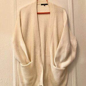 Relaxed fit open front cardigan with front pockets. 100% cotton, 22 inches pit to pit, Excellent condition.