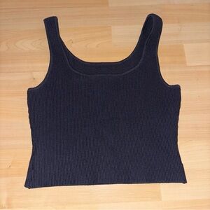 Quince Cropped Square Neck Ribbed Knit Tank Grey Beachy Casual Work Office Wear Closet Staple Layering Office Going Out Date Night Dark Romantic