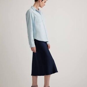 Roll up, roll up. Our denim shirt will have you looking relaxed but ready for anything. As comfy as it is stylish, this classic is made of soft, 100% cotton denim with roll-up sleeves, two front pockets, and darted back for more shape. The tulip sides give a bit of feminine curve and the distressed wash provides extra texture.