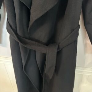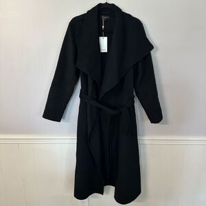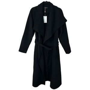 Quince Double Faced 100% Merino Wool Draped Collar Wrap Coat in Black Sz L NWT