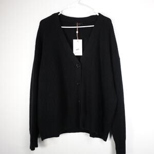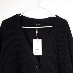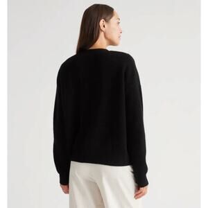 Elevate your wardrobe with this stunning Quince Mongolian Cashmere Fisherman Cropped Cardigan Sweater. The sweater is made of 100% Grade-A Mongolian cashmere and features a tight-knit pattern with a V-neckline and long sleeves. The black color adds a touch of sophistication to the sweater, while the button accents and collarless design give it a unique and relaxed fit.