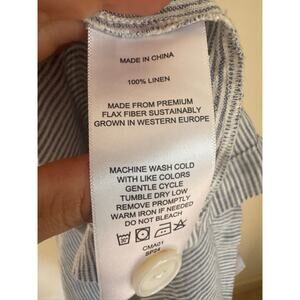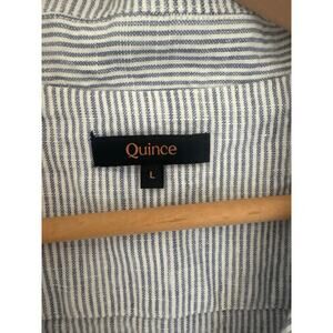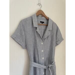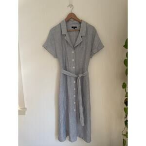 Quince European 100% Linen Striped Button-Up Midi Dress with Belt - Size L
