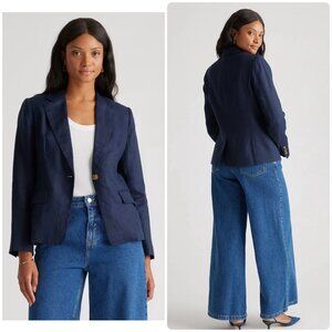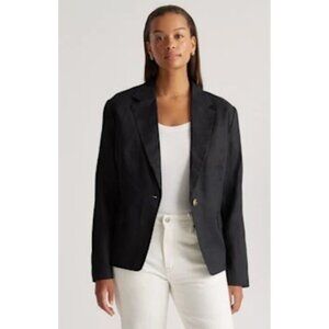 Quince European 100% Linen Structure Blazer Women Large Black Preppy Office Goth