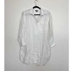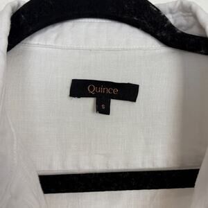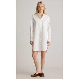 Quince European Linen Button Front Collared Structured Shirt Dress White Small