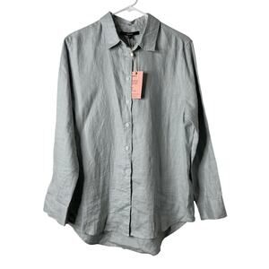 Quince European Linen Button Up Shirt Women’s Large Mist Blue NWT Long Sleeve