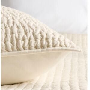 Quince European Linen Cotton Hand Stitch Quilted Euro Sham Ivory NWOT #22