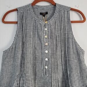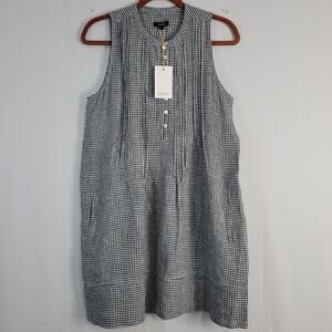 Quince European Linen Sleeveless Swing Dress Classic Mini Gingham sz S black New