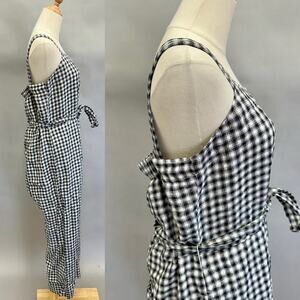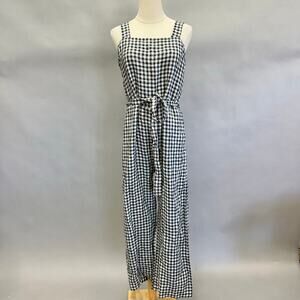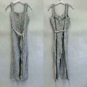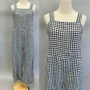 Quince European Linen Square Neck Jumpsuit in Khaki/Black Gingham Medium NWT