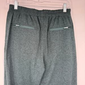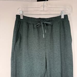 Very good preowned condition - Inseam: 28" - Waist: 28" - Rise: 11.5" - Brand: Quince - Color: Heather Green - Size: S - Style#: ZJGS01 - High rise - Elastic waist with drawstring closure - Slash pockets - Zip pockets back - Tapered leg - Recycled polyester blend - Machine washable athleisure, minimalist, loungewear luxe, clean girl, sporty chic, elevated casual, softcore, street style, comfy core, everyday wear