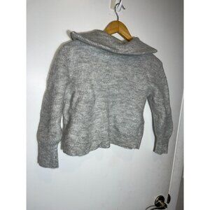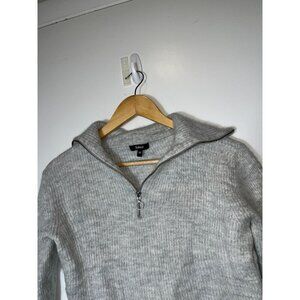 Quince Gray Ribbed Half-Zip Alpaca Merino Wool Women's Crop Sweater M