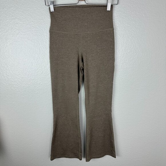 Quince High Rise Flare Cropped Leggings M Neutral Stretch Athletic Activewear At