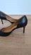 Heel height is 75mm (around 3 inches), easy to wear for work or dressed-up outfits. These are new without the box but have a scratch on the left toe area, please see photo for the close-up.
