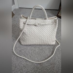 Quince Italian Leather Handwoven Satchel in Bone