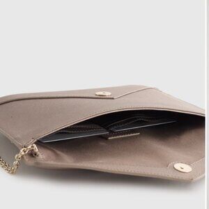 Quince Italian Saffiano Leather Envelope Clutch Gold with Optional Chain