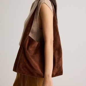 Quince Italian Suede Slouchy Shoulder Bag - Chocolate Brown Tote Purse Handbag