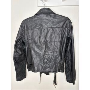 Brand and Product: The jacket is a 100% Leather Motorcycle Jacket by Quince. It is made from top-grain sheep leather, which is noted for being soft and lightweight. &