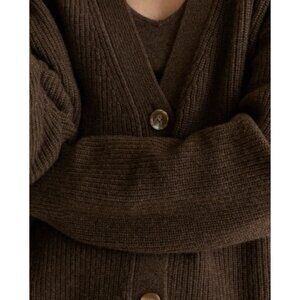 Quince Mongolian Cashmere Fisherman Cropped Cardigan Sweater XL Chocolate Brown