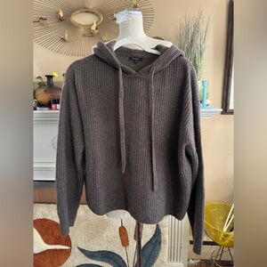 Quince Mongolian Cashmere Fisherman Pullover Hoodie in brown size M