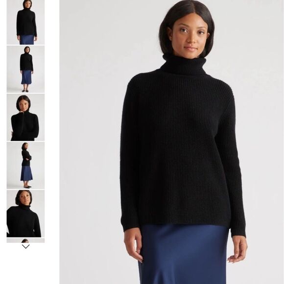 Quince Mongolian Cashmere Fisherman Turtleneck Sweater Black Size XL