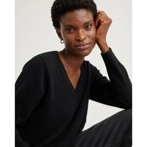 Quince Mongolian Cashmere V Neck Sweater Black XS