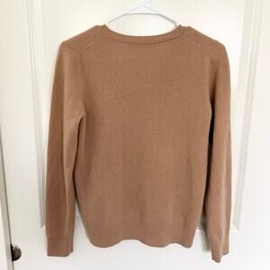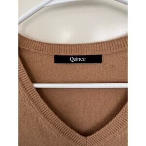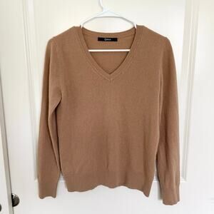 Quince Mongolian Cashmere V-Neck Knit Luxury Sweater Tan Brown Small