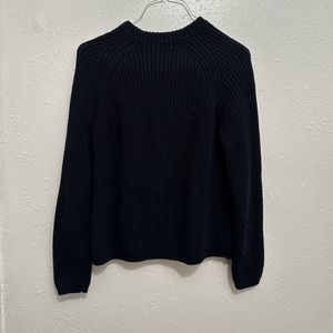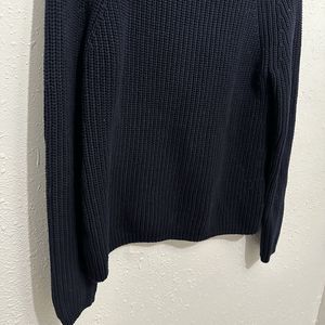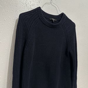 Elegant navy blue sweater. Crew neck design. Perfect for casual wear.