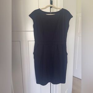 Quince Navy Blue Ultra-Stretch Ponte Cap Sleeve Dress