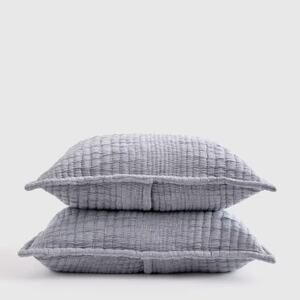 Quince Organic Cotton Channel Stitch Sham Set Blue Standard Pillowcases