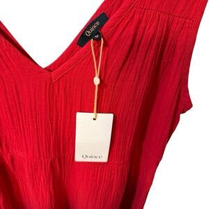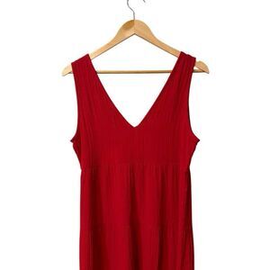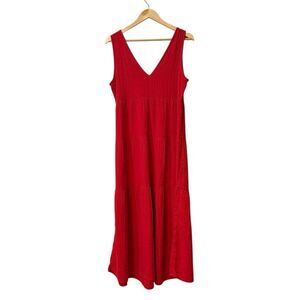 Quince Organic Cotton Gauze Tiered Maxi Dress Size Medium Red NWT