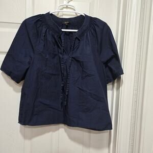 Quince Organic Cotton Navy Split Neck Flutter Sleeve Top S