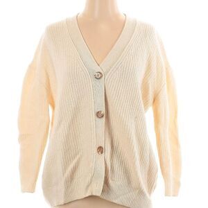 Quince Oversized Ribbed Cream Boyfriend 100% Cashmere Jenni Kayne Cardigan Small