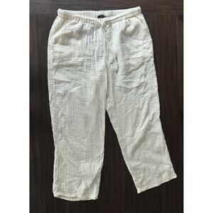 Quince Pants Women’s Large Gauze Organic Cotton Straight Leg Elastic Waist Cream