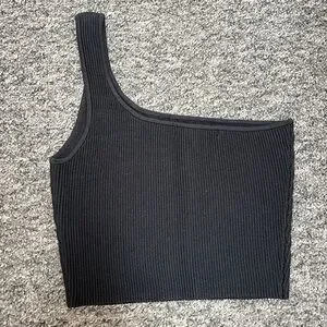 Size M, Quince ribbed crop top, one shouldered. Worn once. Coming from smoke and pet free home. The material is a nice heavy stretchy rib.