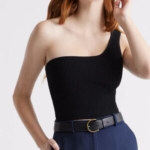 Stylish ribbed top with a unique one-shoulder cut. Perfect for modern looks.