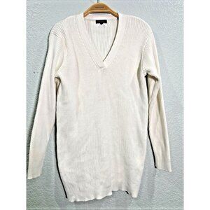 Quince Ribbed Sweater Women's M White Organic Cotton Side Zips Quiet Luxury
