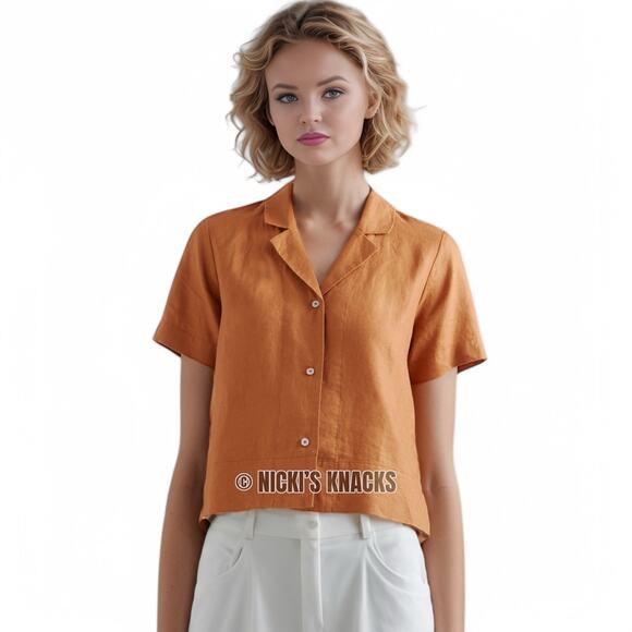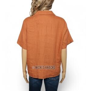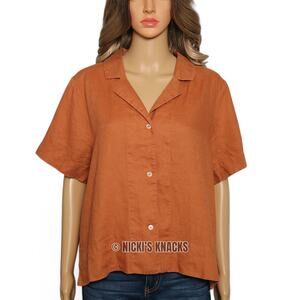 Quince Short Sleeve 100% Linen Button Down Short Sleeve Shirt Terraotta Size L