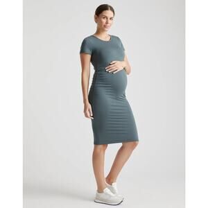 Quince Tencel Jersey Maternity Ruched Short Sleeve Dress Dark Olive Small