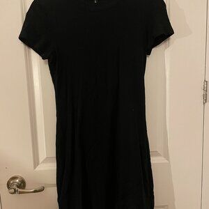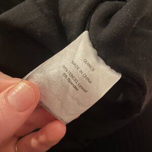This is a discontinued mini dress made of tencel, by Quince. It's a thick, high quality, and very soft fabric, and has a bit of a slimming effect -- very flattering.