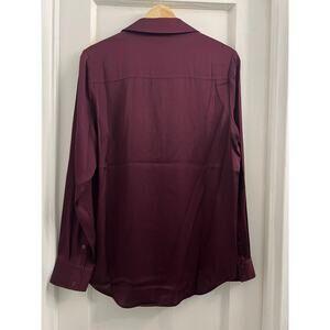Quince Washable Stretch Silk Classic Long Sleeve Notch Collar Blouse Eggplant M