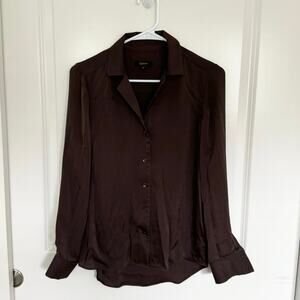 Quince Washable Stretch Silk Notch Collar Blouse Hot Fudge Brown Small