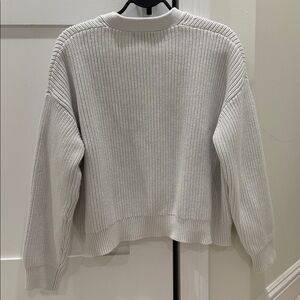 Chic white cardigan with button-up front. Ideal for layering. Thick, warm, boxy fit.