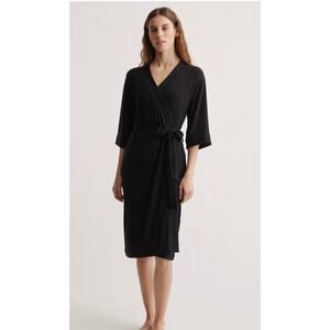 Quince Wm's Bamboo Jersey Luxury Soft Robe Black long Sz S #19