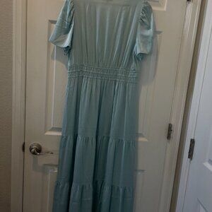 Quince Wm's Washable Mulberry Stretch Silk Tiered Dress in Blue Sz Medium #