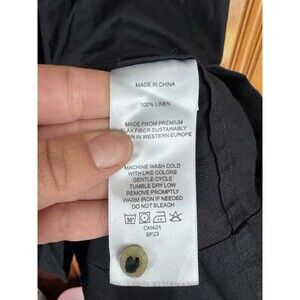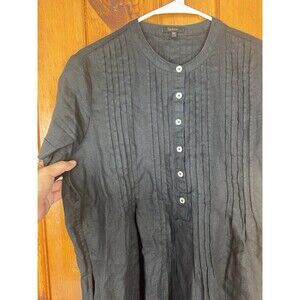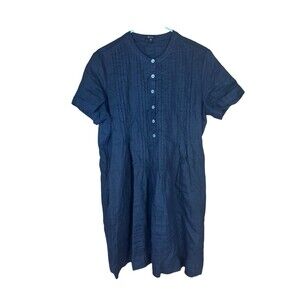Quince Womens 100% European Linen Short Sleeve Swing Dress Black Medium Pleats