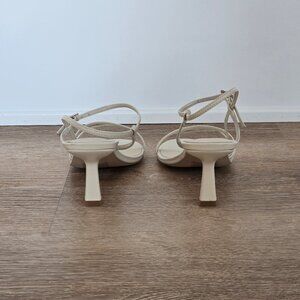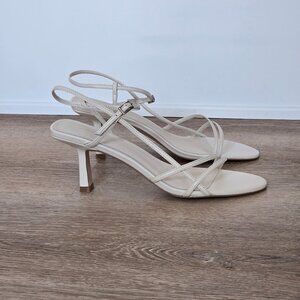 Quince Womens Italian Leather 70Mm Strappy Heel Bone Shoes 8 New With Tags & Box
