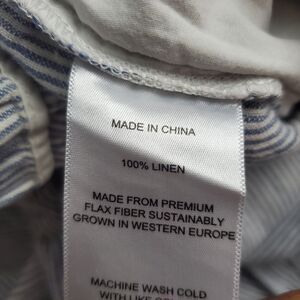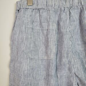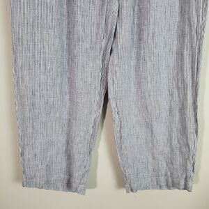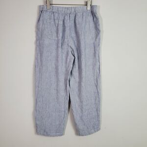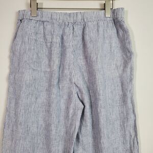 Quince Women's Pants Large Blue White Striped Linen Wide Leg Coastal Lagenlook