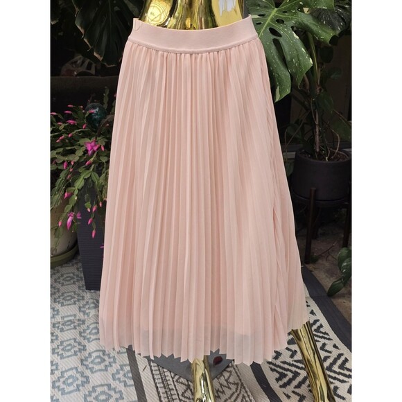 Quince Women’s Pleated Midi Skirt Blush Pink Size Small Elastic Waist NWT