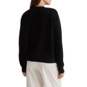 Quince Women's XL Black 100% Cashmere Fisherman Cropped Cardigan Sweater
