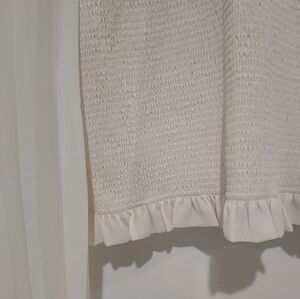 Beautiful Quince long sleeved blouse. Like new condition. Sheer sleeves with frilled cuff, elastic. Frilled torso hem, fitted torso fabric. Stunning fit. Zippered back closure.