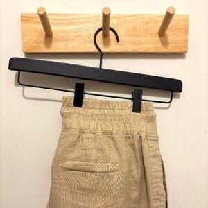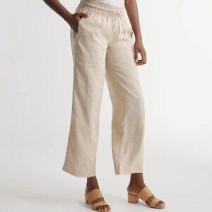 Quince tan linen pants (size medium) with elastic waistband. These are similar pants, I think maybe the exact same: https://www.quince.com/women/women-s-100-european-linen-wide-leg-pant